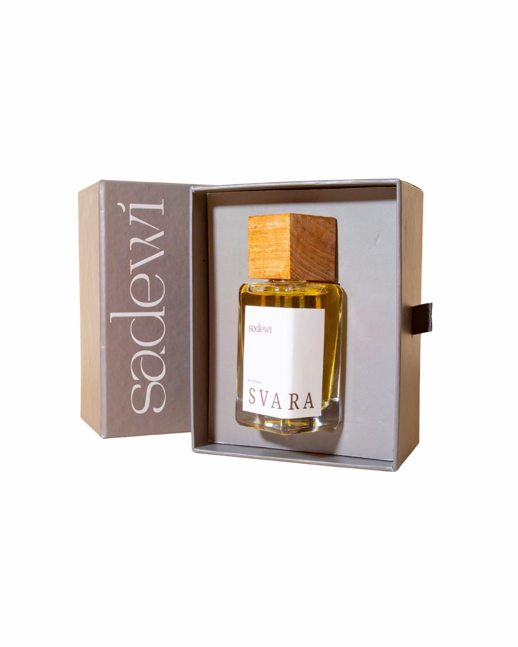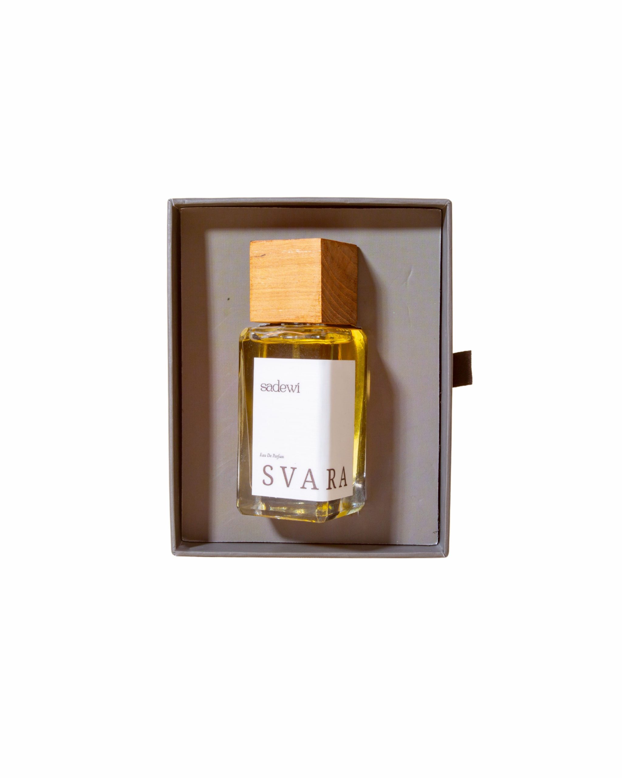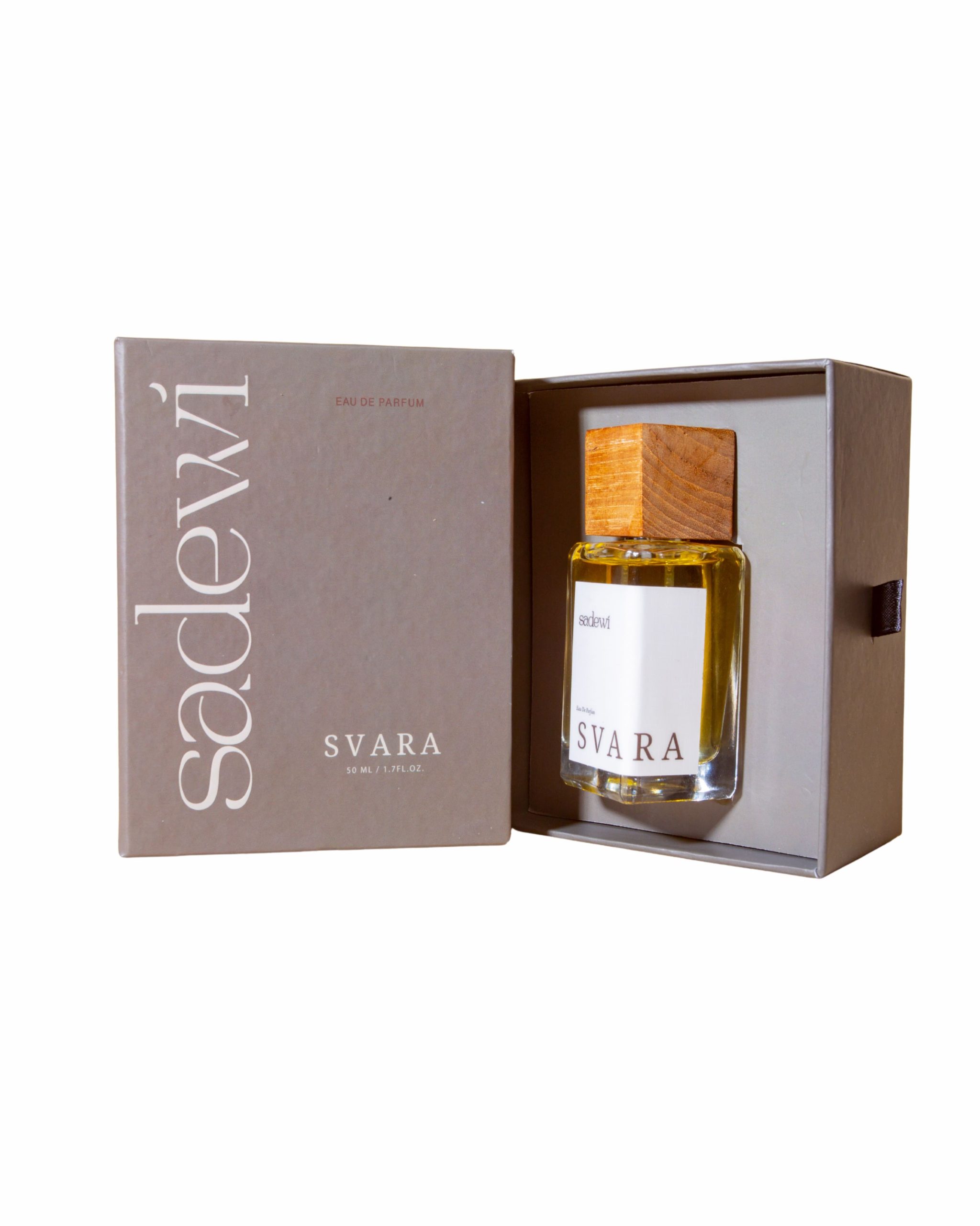 Svara adalah wangi yang berbicara tanpa kata. Dimulai dengan keharuman black pepper dan ginger yang hangat dan berani, dibalut kelembutan pear yang segar—seperti langkah pertama yang penuh percaya diri. Di tengah, jasmine, orris, dan orange blossom menghadirkan aroma bunga yang lembut namun memikat, menciptakan kesan anggun dan modern. Ditutup dengan kehangatan musk, kekayaan karakter dari akigalawood, dan sentuhan kering amber yang meninggalkan jejak tahan lama—mewakili ketenangan dan kekuatan dalam satu harmoni.
